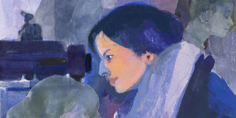 "When's the chap due?" He pushes his glasses up on his nose and squeezes the last bit of liquid from his tea bag.