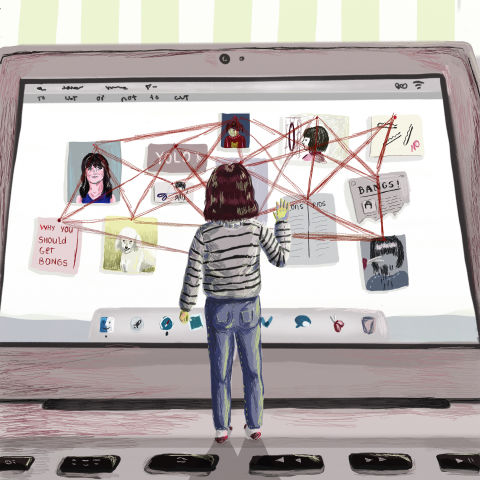 With any decision pertaining to your body, the advice leads you back to you, to what feels right in your skin. I was fixated on this sensation that my hair wanted to go forward. You know how it is. One day you're a productive member of society, the next day you start pulling the hair forward and trying to figure out how the bangs would look. Then you see a random picture of your young self with bangs, and my God, look how they framed your face. Look how they work! And then it's back to the Internet, where you are warned of this dangerous path that starts with your mistaking your childhood face for your adulthood face. The Internet says you can't get bangs because of a second-grade classroom photo. Oh well.